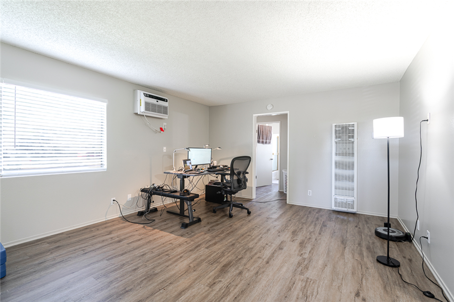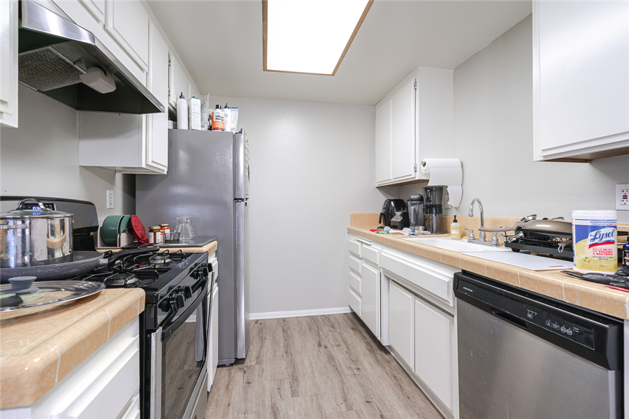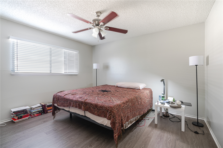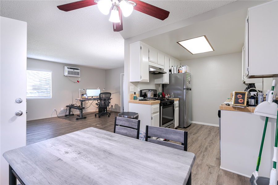 Each unit is bright and spacious. Some unit have been partially updated with wood/vinyl flooring. Each unit has either tiled or laminate kitchen countertop, through-the-wall A/C, wall heating, gas stove, dishwasher, and ceiling fans in living room and each bedroom. Each unit is separately metered for electricity and gas. The building is serviced by a master water heater and shared laundry room (seller’s own machines).  The roof is in excellent condition (buyer to verify). Parking is provided by a total of 16 spaces (15 garages + 1 open). Buyer can convert some of the garages into several ADUs (buyer to verify).
