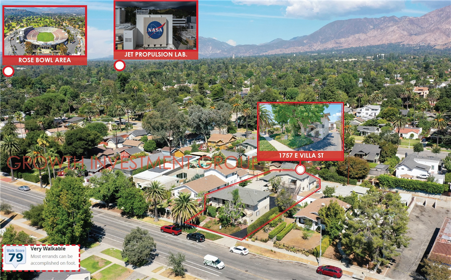Growth Investment Group California is proud to offer 1757 E. Villa St, a 6-unit value-add apartment in a highly desirable location in the City of Pasadena, CA. This property has been very well maintained by current family who have owned it since 1981. Fully occupied, current rents are approximately ±56% below market – all tenants are month-to-month. It is located only between Allen Ave and Hill Ave and within walking distance from CALTECH and Pasadena City College. It is minutes away from most of City of Pasadena amenities such as Lake Ave Shopping District and Old Town Pasadena. It has excellent demographics of ±$143,972 average household income in a 1-mile radius.
