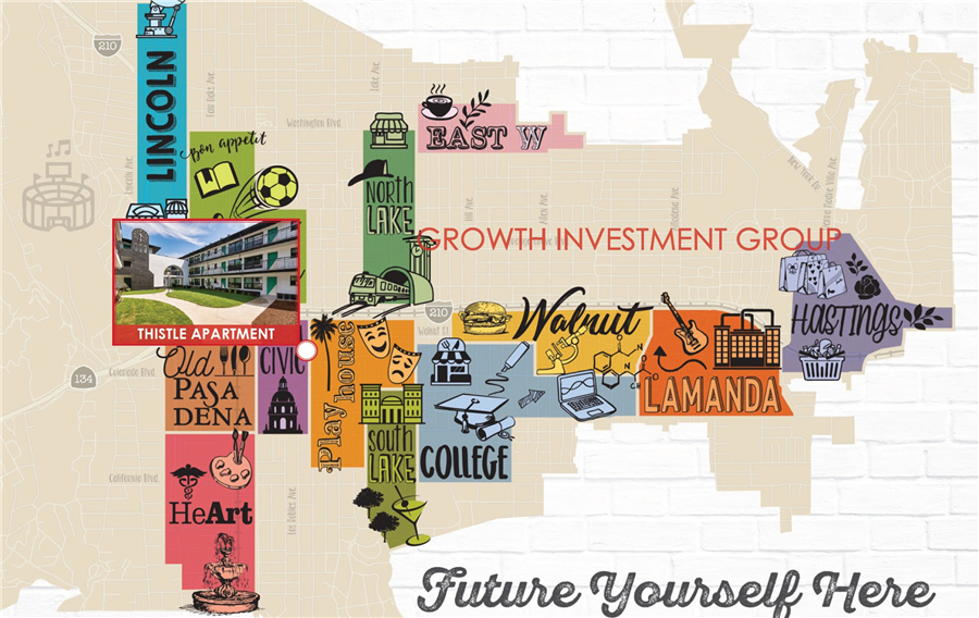 Growth Investment Group California is proud to offer THE THISTLE – 262 N Los Robles Ave, a Design Centric 93-unit Mid Century modern luxury apartment investment opportunity located in the highly desirable City of Pasadena, CA. The property is located within Pasadena Village District, an eclectic cosmopolitan community rich in history and architecture. Because of this superb location, it has a Walk Score 89 out of 100, demonstrating “walker’s paradise” location to a variety of nearby amenities such as restaurants, shops, health clubs and entertainment venues. The property has been completely upgraded from top to bottom between 2018-2020 and provides a turn-key investment offering. It has a superb location south of FWY 210, across the street from Kaiser Permanente Pasadena, and several lots away from The Westin Pasadena. Tenants enjoy walking distance to Paseo Colorado, Pasadena City Hall & Library, Old Town Pasadena, and almost all amenities City of Pasadena has to offer.