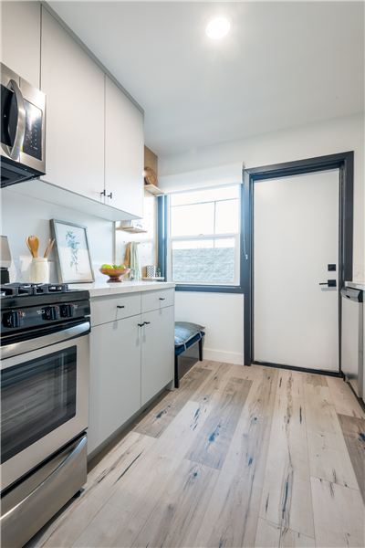 - Amenities rich apartment community: Leasing Office, On-site manager, fitness center, BBQ/picnic area, fire pit, controlled access, security cameras, courtyard, dog wash, subterranean parking, secured bike storage, storage units, secured package room with parcel pending lockers, complete convenient towel service, boutique catering kitchen appliances, elevator, and laundry room