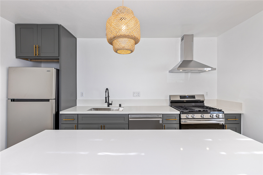 The property offers an excellent unit mix of SIX (6) x 2bedroom+1bathroom and nine (9) x 1bedroom+1bathroom. Each unit is spacious with an excellent floor plan, and each has been completely upgraded from top to bottom with attention to detail. Each unit has new flooring throughout, new kitchen with shakers cabinets (complete with kitchen island for the 2B units, and breakfast counter for the 1B units), Carrera quartz countertops and stainless-steel kitchen appliances including dishwasher and SS kitchen vent hood, new tiled bathroom with new vanities, smooth ceiling throughout, in-unit washer/dryer, new modern lighting fixtures throughout and new mini-split efficient a/c heating unit in living room and each bedroom. Each unit is separately metered for electricity and gas.